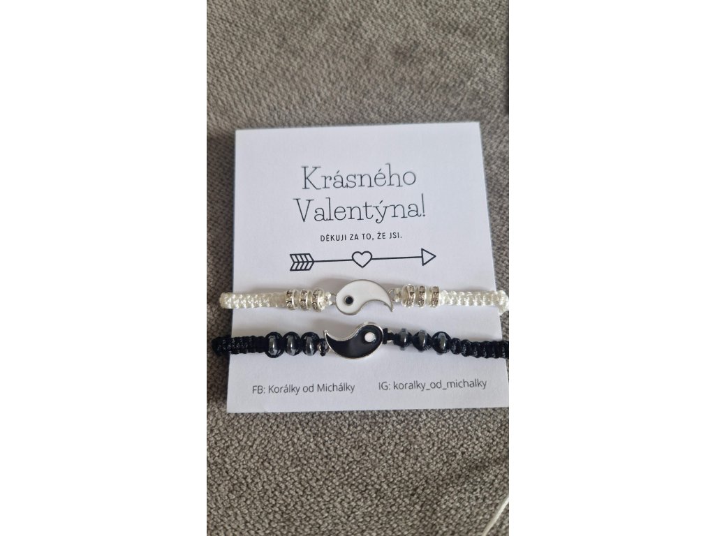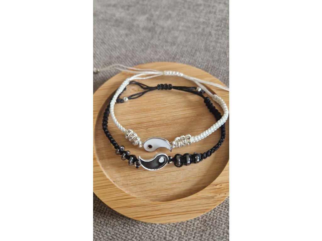 Párové šňůrkové náramky se symbolem Jin a Jang.