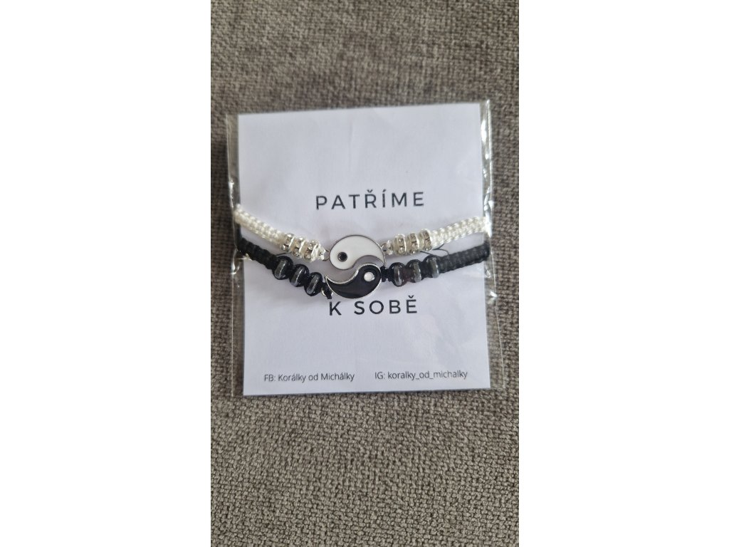 párové šňůrkové náramky se symbolem Jin a Jang