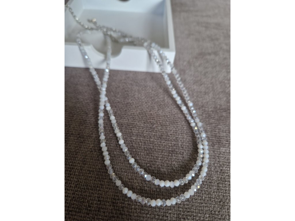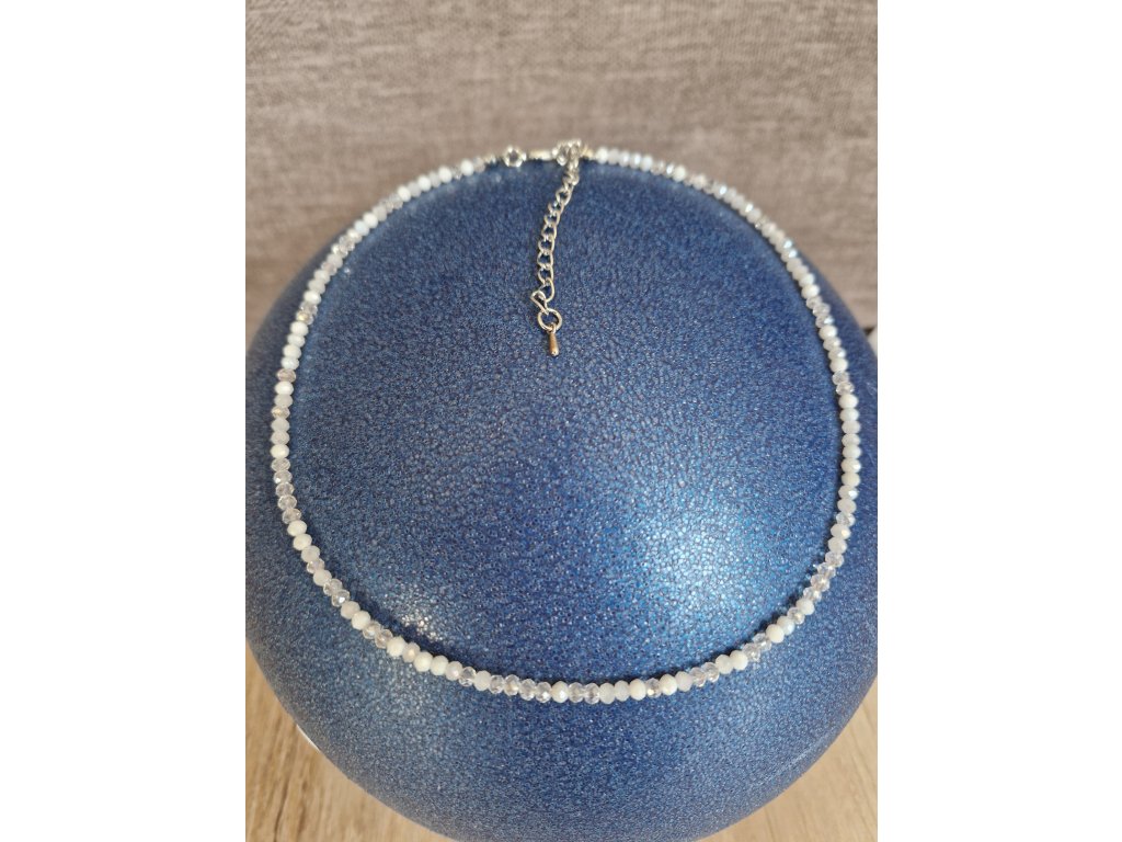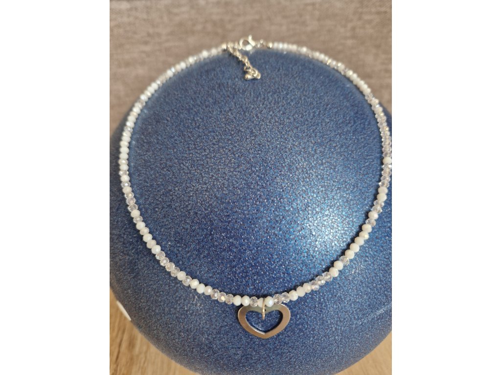 Průsvitný choker se stříbrnými komponenty – jemné a decentní provedení z mini broušených korálků, možnost doplnit o stříbrné srdíčko z chirurgické oceli