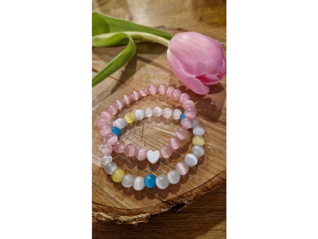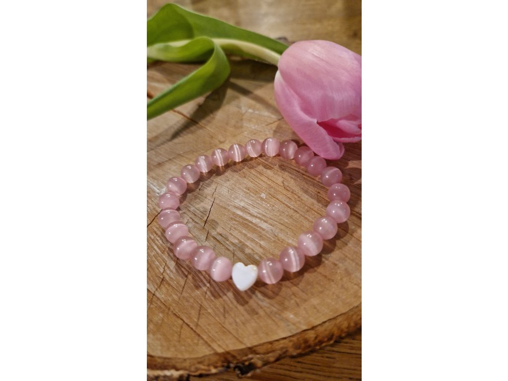 - Růžový v kombinaci s perleťovým srdíčkem